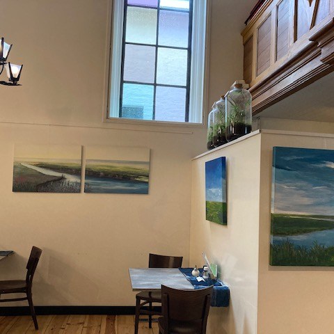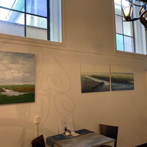 Sinds oktober 2020 hangt een aantal schilderijen op een geweldige locatie in Kockengen, vlakbij Woerden. Kunst en Koffie huist in een voormalig gereformeerd kerkje en is nu de werkplek voor mensen met een lichte of matige verstandelijke beperking.