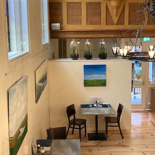 De schilderijen zijn gelukkig weer te zien. Wellicht is het leuk om daar aan te waaien voor een heerlijke kop soep, stuk quiche of een kop koffie met een taartje?